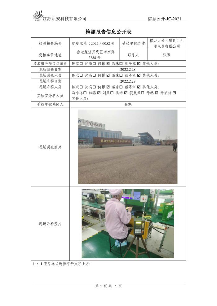 檢測報告公示