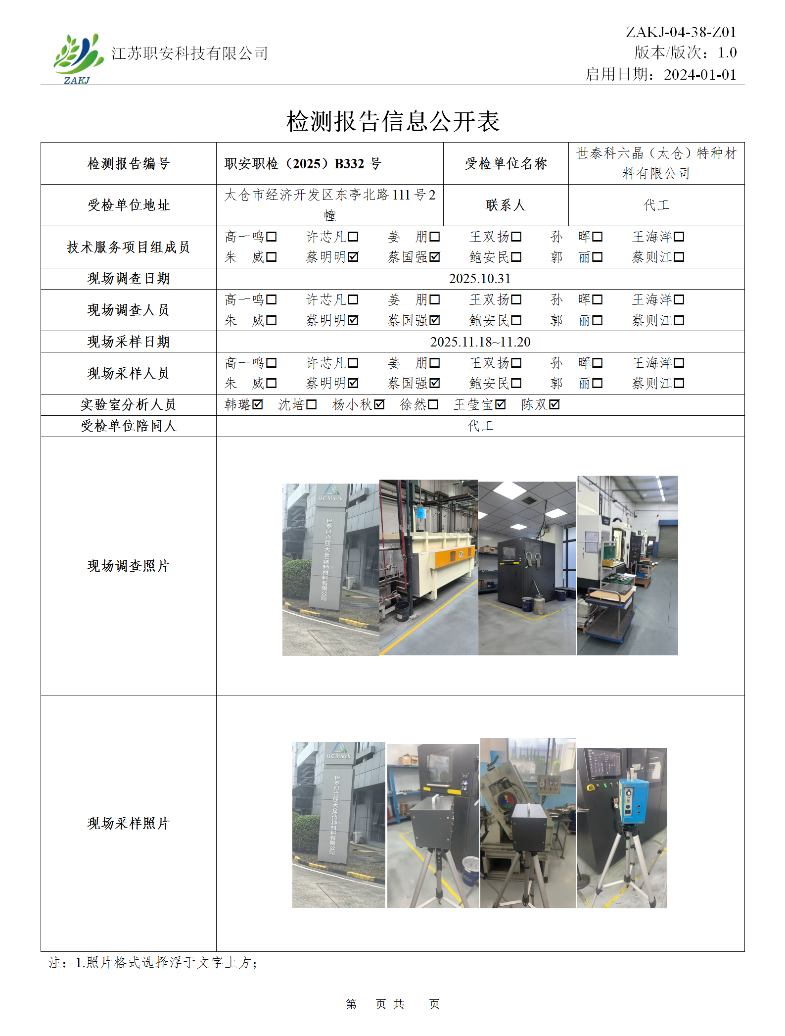 檢測報告公示