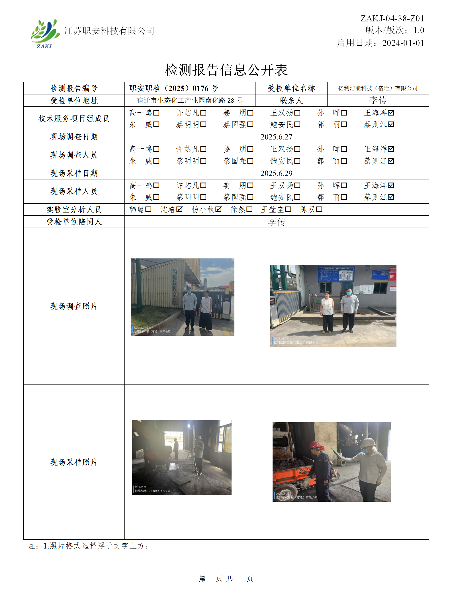 檢測報告公示